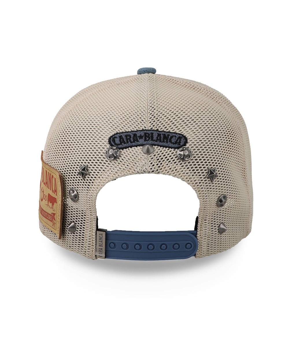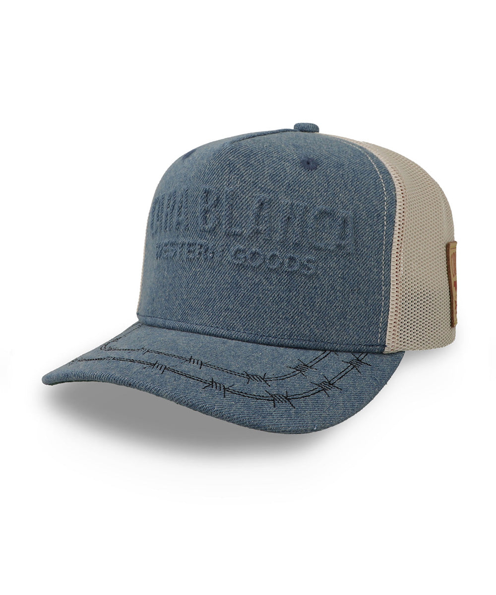 La gorra Cara Blanca Branded Denim en color azul tipo mezclilla combina un diseño western moderno con panel trasero de malla para mayor ventilación. Su bordado frontal discreto y los detalles inspirados en alambre de púas en la visera le dan un estilo auténtico y diferente. Una gorra perfecta para quienes buscan comodidad, personalidad y el espíritu del oeste en cada outfit.