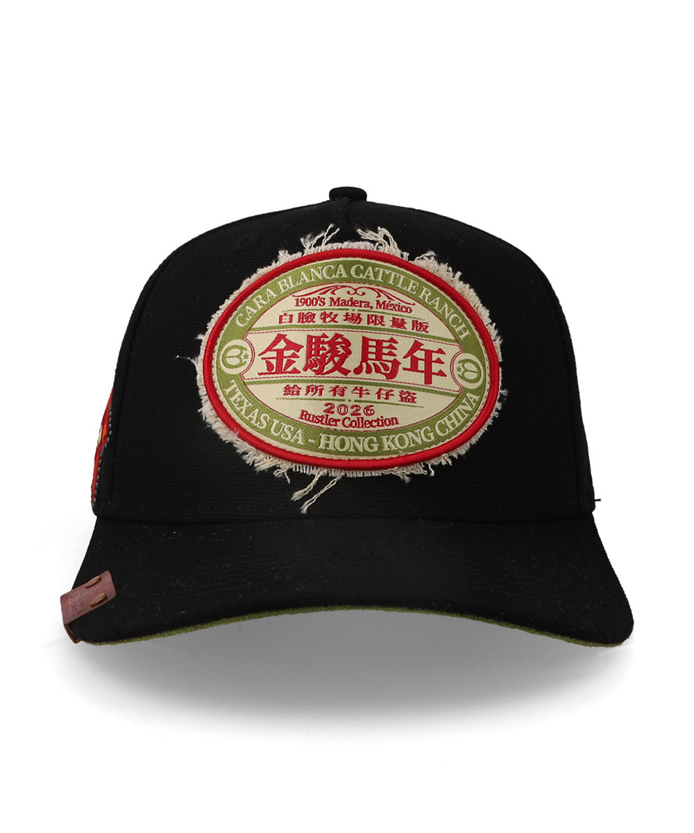 La gorra Cara Blanca Golden Ranch en color negro destaca por su parche frontal estilo vintage inspirado en ranchos tradicionales que refleja la esencia del viejo oeste. Su diseño clásico y estructura firme ofrecen comodidad y un look auténtico para el día a día. Una gorra perfecta para quienes buscan estilo western, carácter y personalidad en cada detalle.