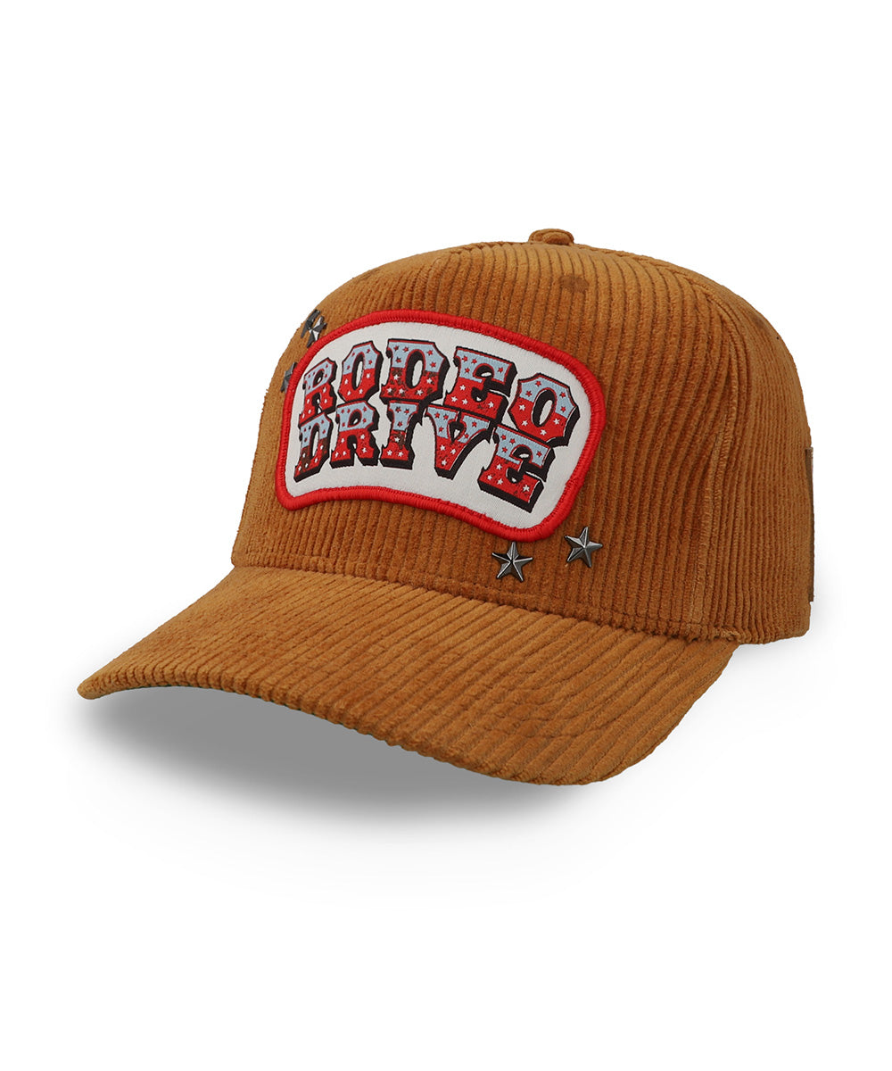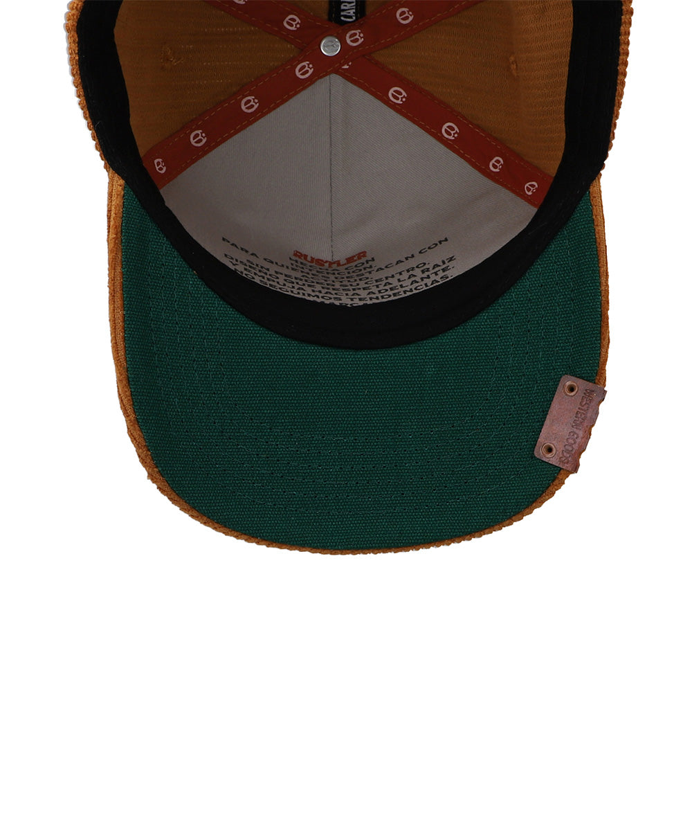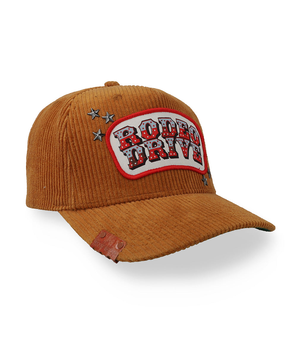 Estilo western con vibra vintage. La Gorra Cara Blanca Rodeo Drive destaca por su textura de pana, parche bordado y detalles metálicos que le dan un look auténtico y con personalidad.